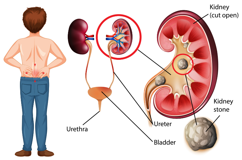 Kidney stones (renal lithiasis) are small, hard deposits that form inside your kidneys. The stones are made of mineral and acid salts. Kidney stones have many causes and can affect any part of your urinary tract — from your kidneys to your bladder.
